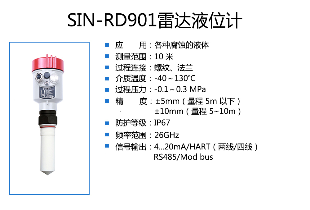您的位置:首頁 > 雷達液位計 → 聯測_SIN-RD901雷達液位計_適用于各種腐蝕的液體_