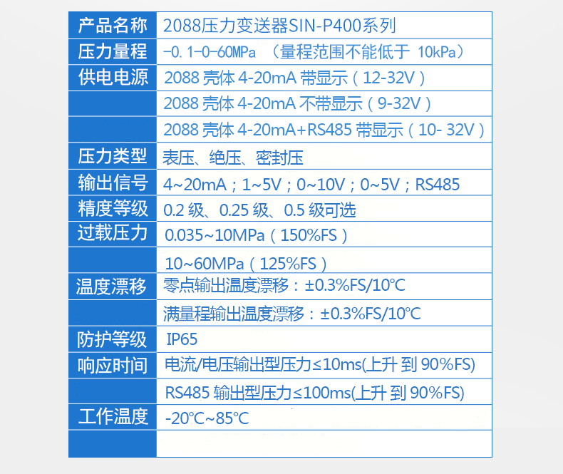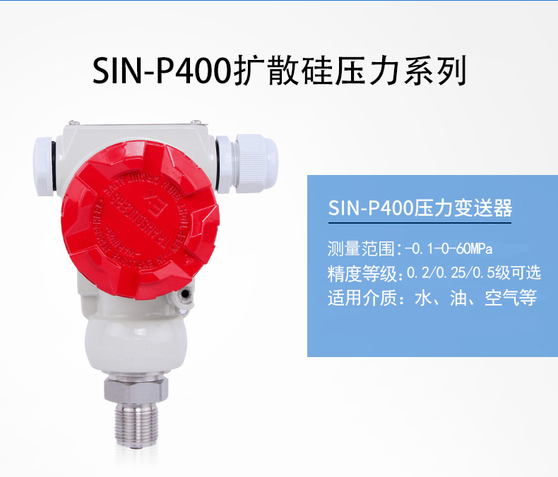 SIN-P400壓力變送器,采用全數(shù)字電路板,做到用戶(hù)可在一定范圍內(nèi)自行現(xiàn)場(chǎng)修改量程,極大的方便了現(xiàn)場(chǎng)使用。