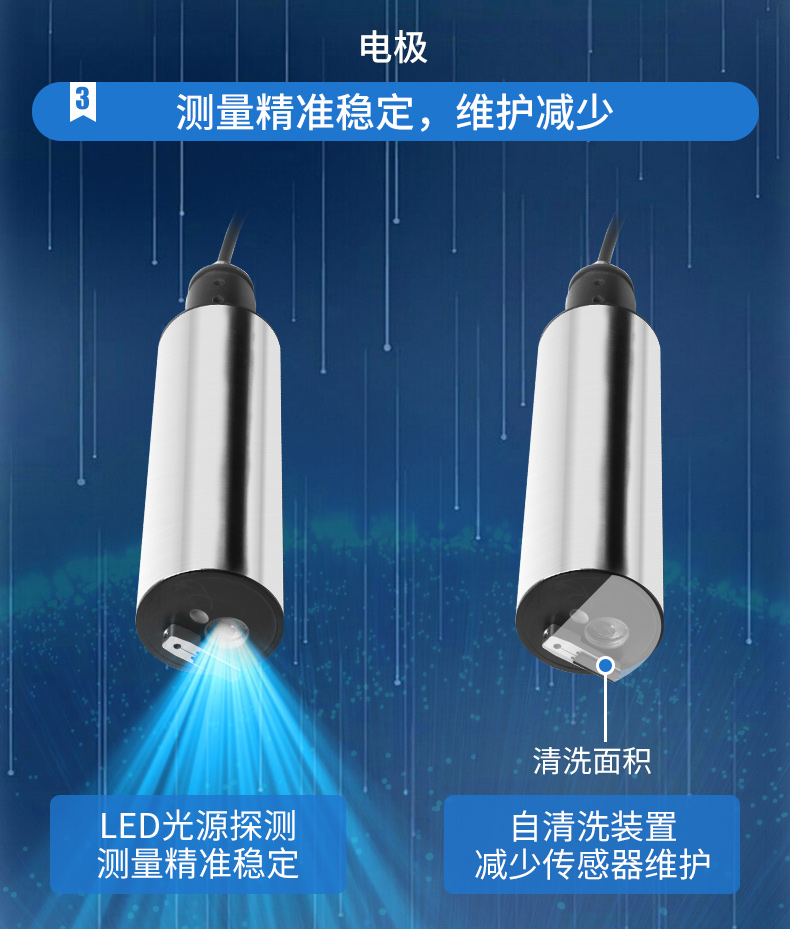 濁度/污泥濃度傳感器的原理基于組合紅外吸收散射光線法,應用 ISO7027 方法可以連續并精確地測定濁度或污泥濃度。