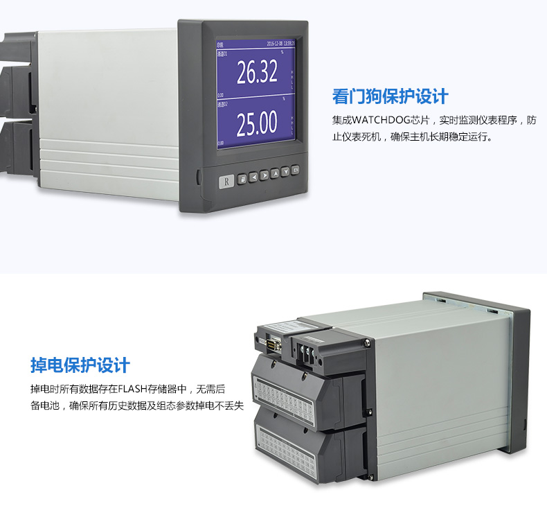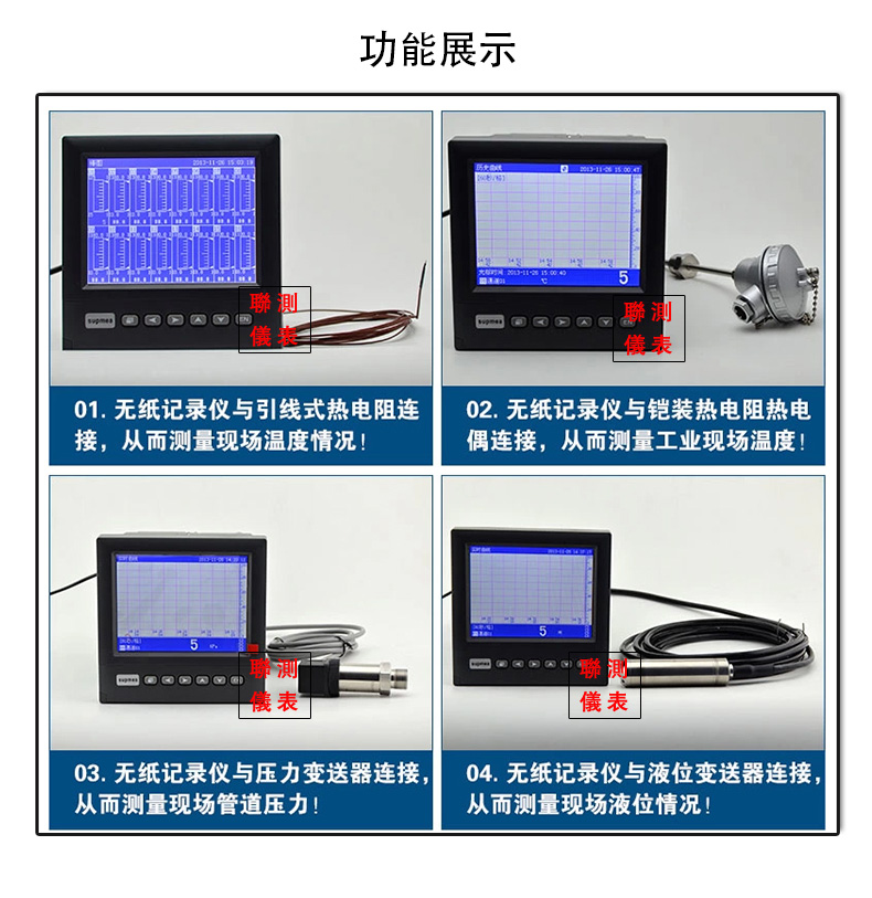 無紙記錄儀是將采集的數(shù)據(jù)/運(yùn)算數(shù)據(jù)以時(shí)間為基軸記錄在儀器內(nèi)部的存儲(chǔ)系統(tǒng)中,無消耗任何常用的記錄設(shè)施,如:紙張、筆墨。記錄在儀器內(nèi)部的存儲(chǔ)數(shù)據(jù),通過運(yùn)算、模擬后顯示在液晶屏。常用顯示用液晶屏比較廣泛。在液晶屏屏幕上,可以顯示數(shù)字顯示、棒圖顯示、曲線顯示、報(bào)警列表等。無紙記錄儀采集的數(shù)據(jù),常用的有:溫度、壓力、流量、液位、電壓、電流、濕度、頻率、振動(dòng)、轉(zhuǎn)速等。