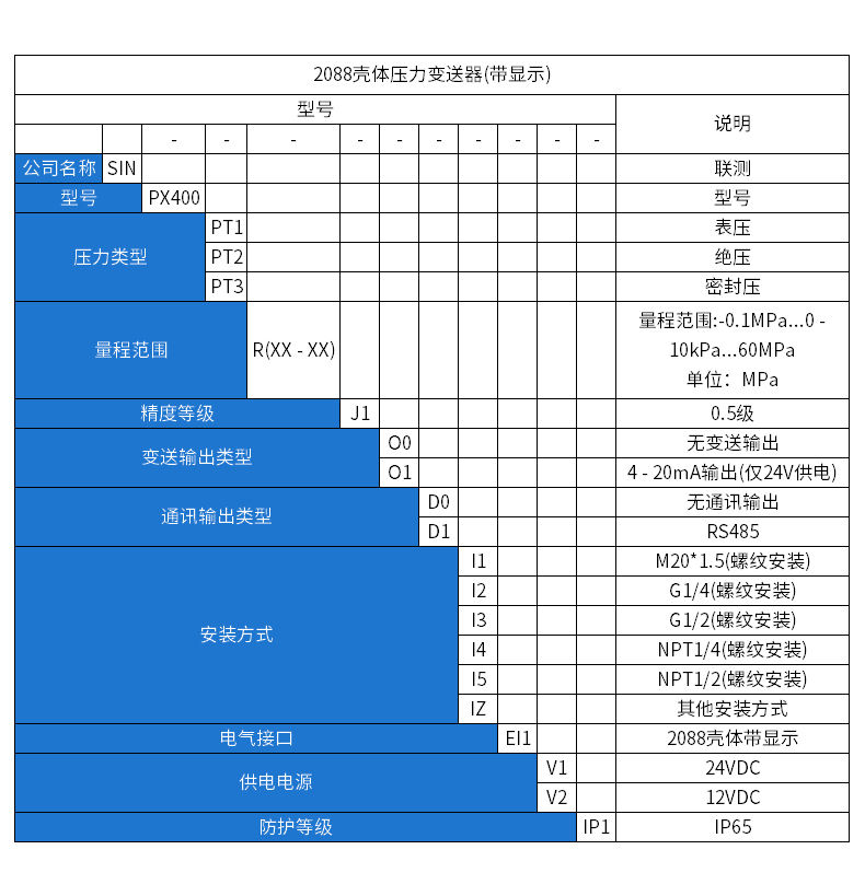 您的位置:首頁 > 壓力變送器 → 聯測_SIN-P400_2088型壓力變送器_榔頭型_可帶顯示
